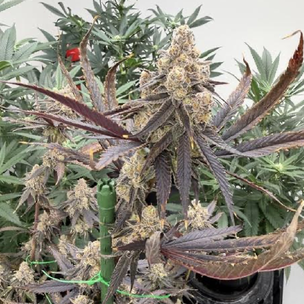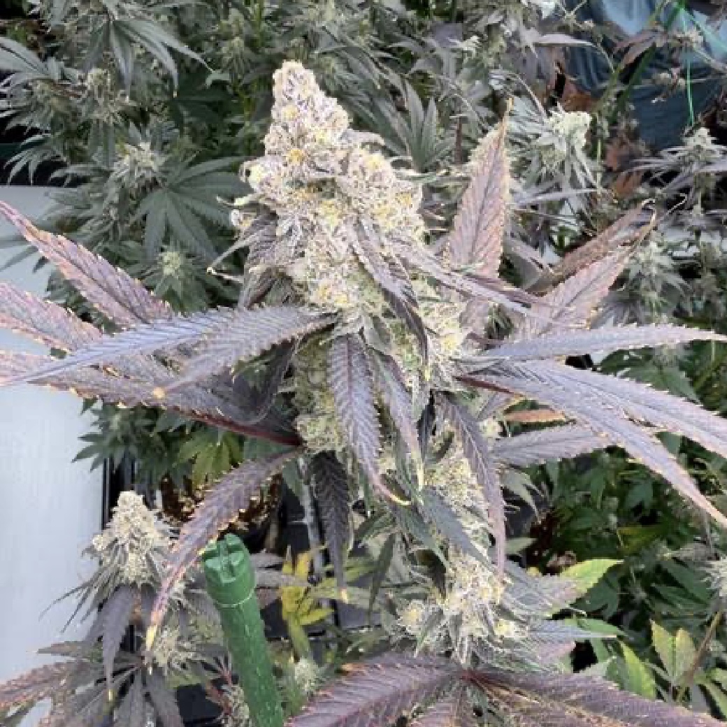 Expect an apical dominant plant capable of generating good laterals when topped. Moderate internodal spacing and a lack of excess leaf allow for good airflow. Apple Peelz will develop dark purples on the leaves along with light to dark purple and greens in the calyxes of its pointy, conical buds. This strain is a sugar dumper with tons of trichome accumulation from top to bottom.