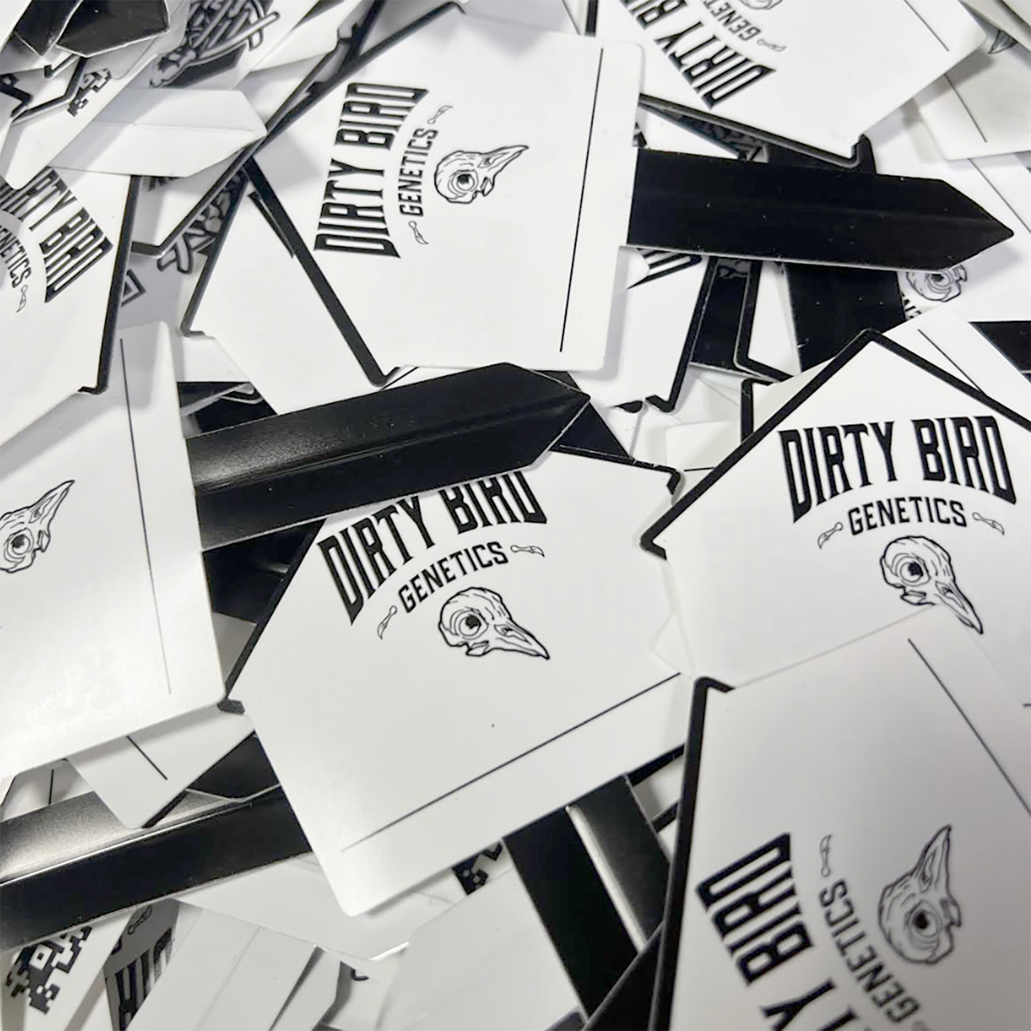 Dirty Bird Plant Labels are made from Contempure (FDA compliant organic additive that naturally accelerates the rate of biodegradation of plastics in a landfill environment.)