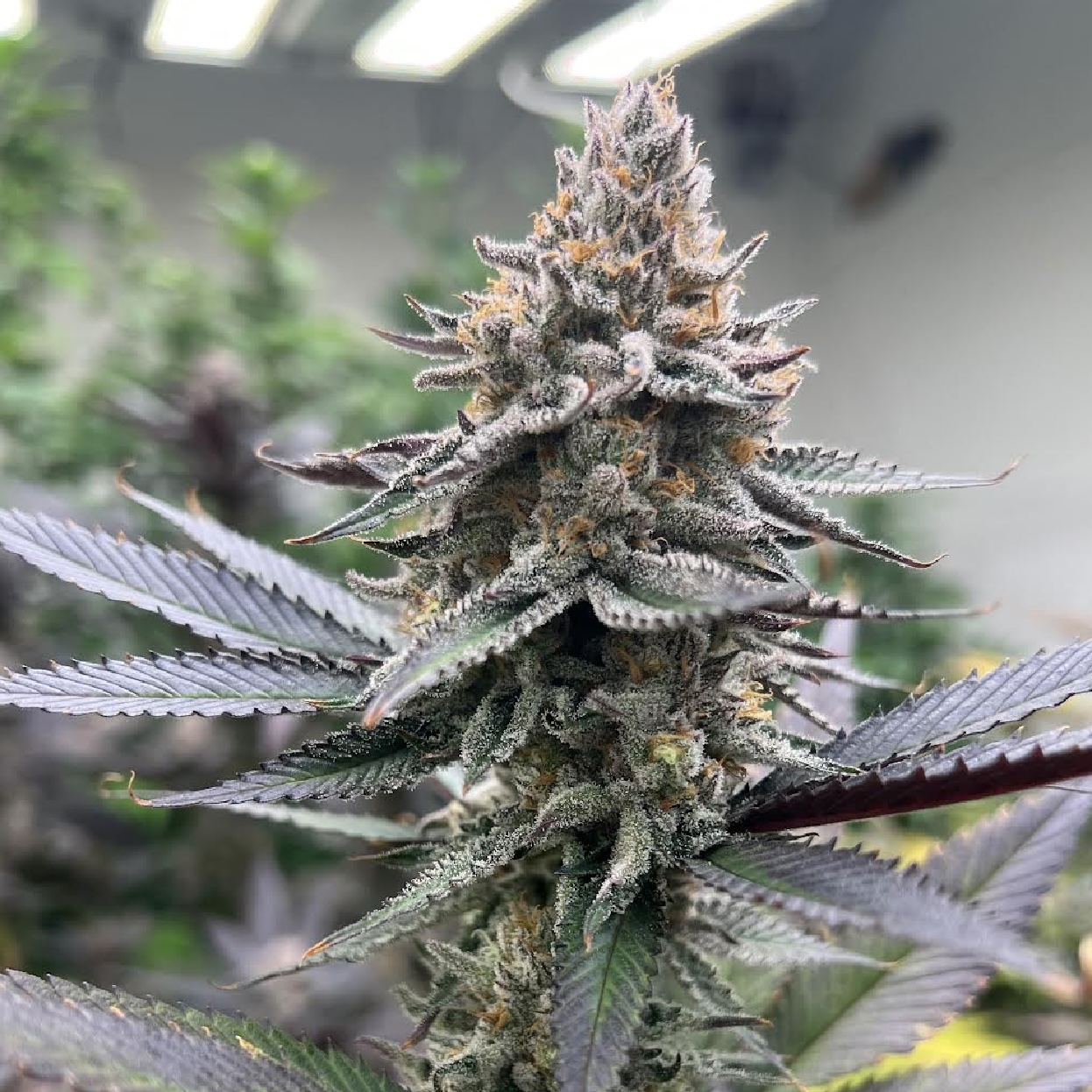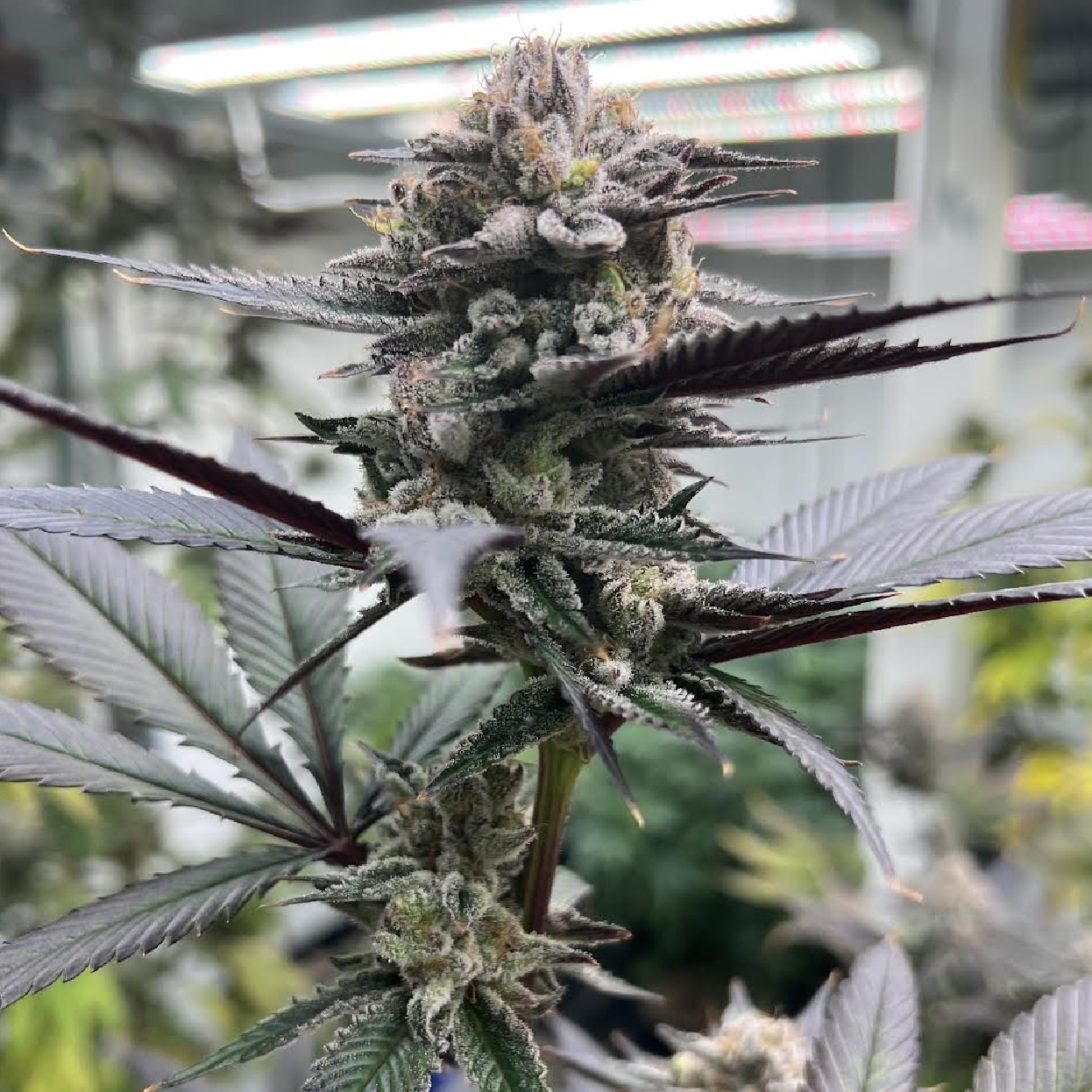 Grape Juice Box is an easy to grow strain. Most plants have above average internal spacing and a high calyx-leaf ratio, promoting good airflow and easy trimming. Bud shape (high density regardless) varies from stacked spears to more rounded, standalone nugs. Expect an array of sugar-covered purples and deep maroons to develop late into flower. Outliers had only hints of purples which could still be seen speckled in the buds.