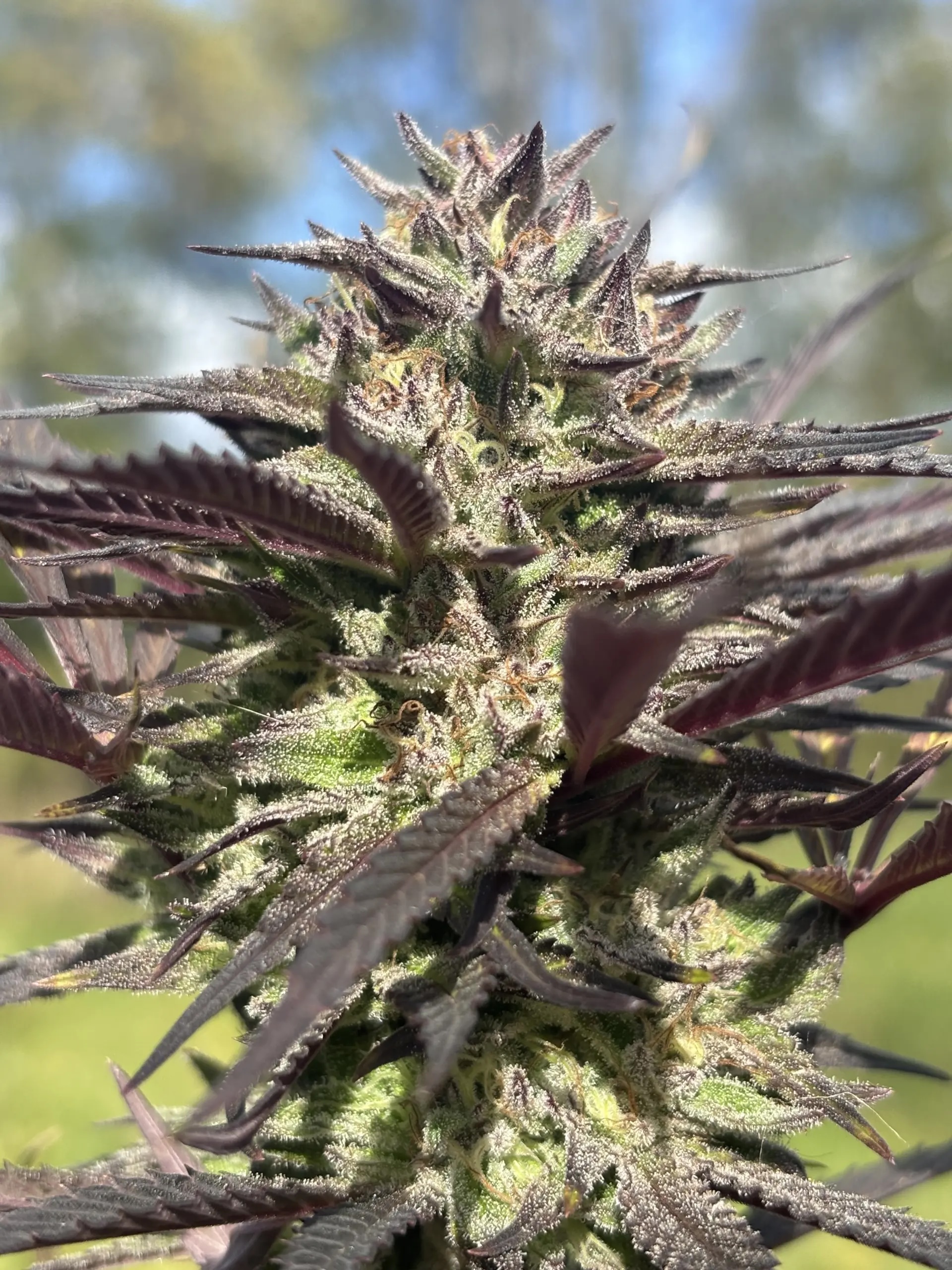 The Sex Melon #3 mother used in this project is easily one of our team’s favorite mother plants of all time, and she really shined in this mashup with the Grape Cake Head (Jungle Boys). From the beautiful dark purple and neon-green coloring, to the complex, tropical Sex Melon-dominant terpenes, this strain was an exciting cultivar to grow, and packed on some serious sugar. To top it all off, the majority finished very early, by day 55, and were some of the best to come out of our outdoor garden this year as well.