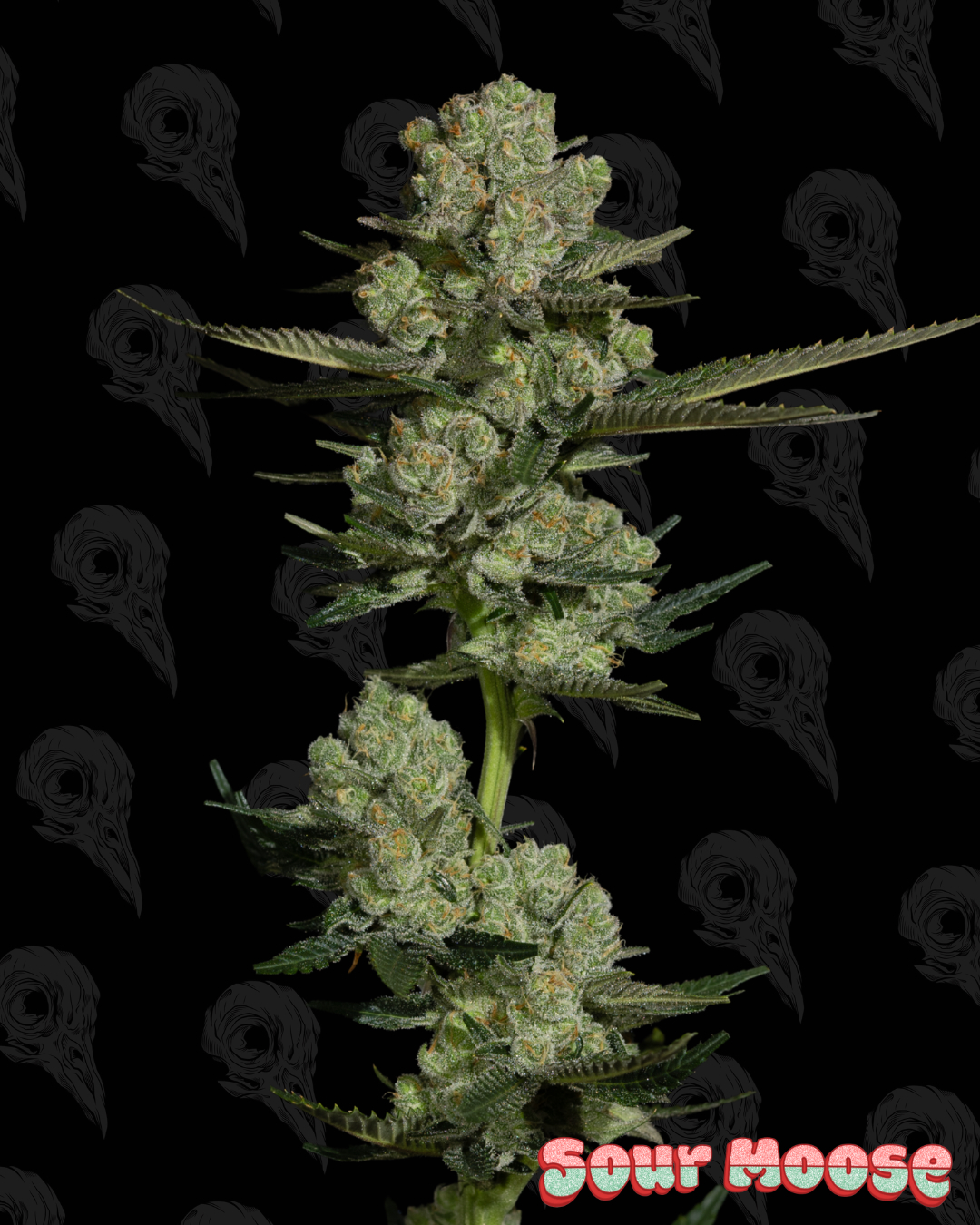 Sour Moose is a fast and healthy grower, with large fan leaves and a high volume and bud sites. Sturdy apical and lateral branching responds well to multiple toppings. Low to moderate stretch in flower makes it good for small grow spaces. These plants experience fast floral initiation and pack on tons of weight very quickly.